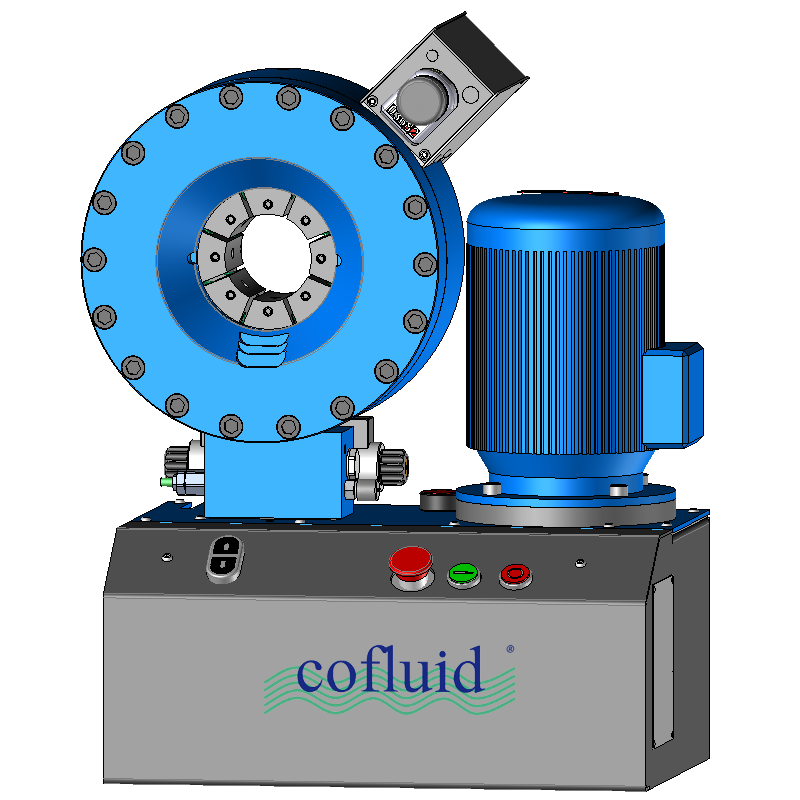 Pressa elettrica con comandi elettrici ideale per la raccordatura di tubi flessibili oleodinamici fino a 2.1/4″