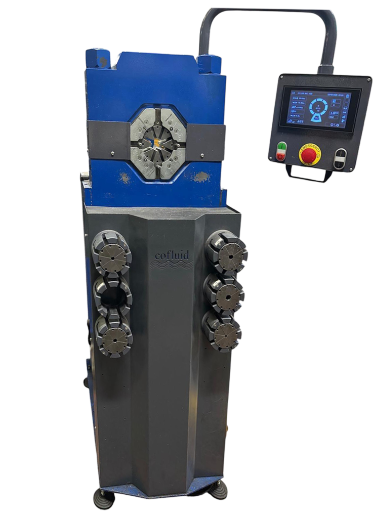 Dotata di una forza di pressatura di 150 ton, la pressa F140ED consente di raccordare ad alta velocità tubi industriali fino a 1 1/2″.